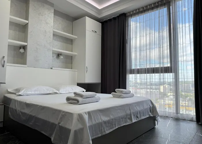 The 55 m² Skyhouse Premium Loft Apartment Chisinau features convenient proximity to such city attractions as Piata Tiraspol, situated just 6 minutes' walk away. This 1-bedroom apartment has city views to offer and also private parking on site.